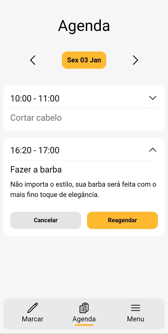 - 2. Escolhe o serviço e horário para agendar
